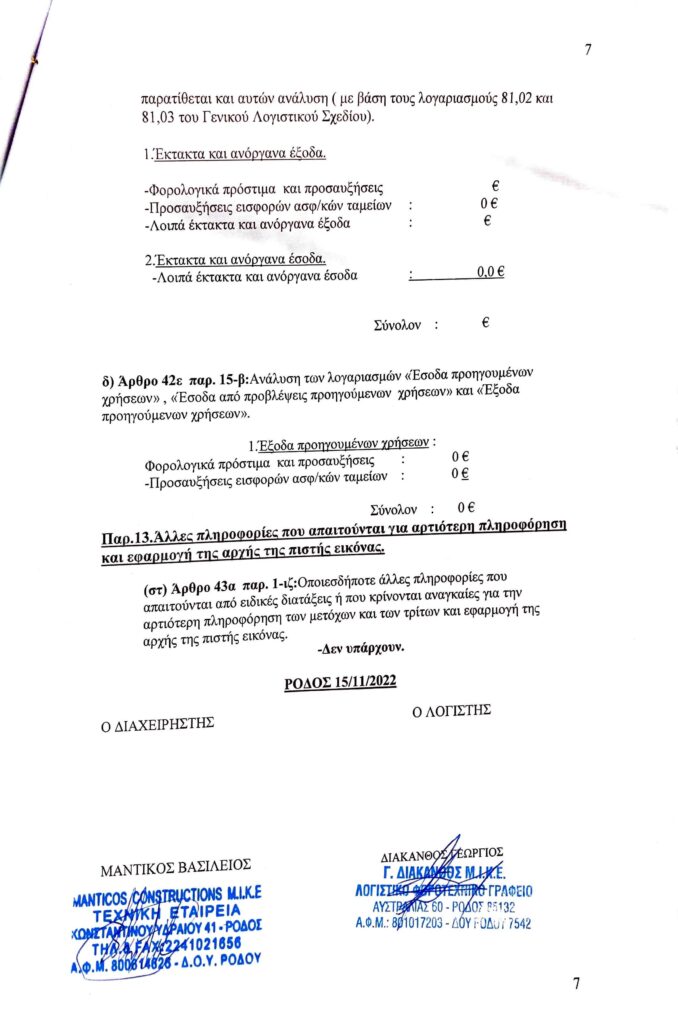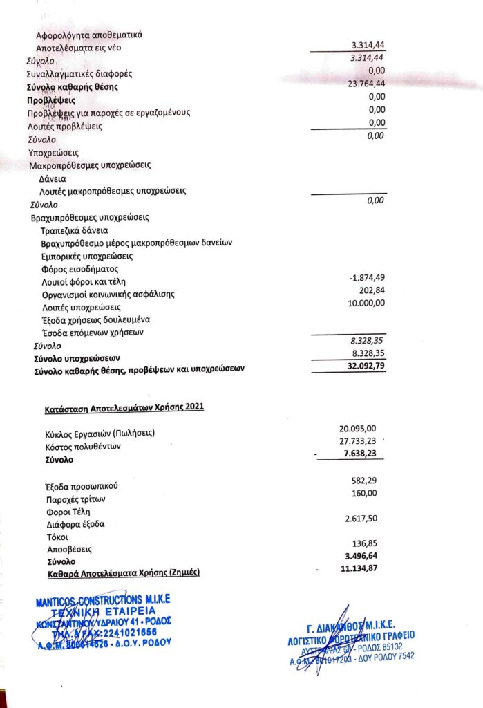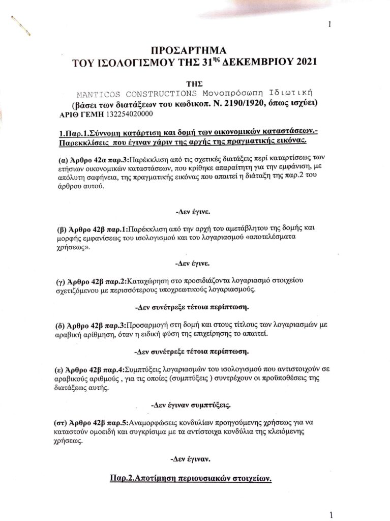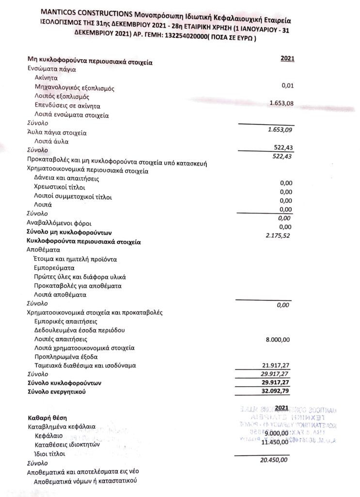 Οικονομικά Στοιχεία Manticos Constructions • Μονοπρόσωπη Ιδιωτική Κεφαλαιουχική Εταιρεία